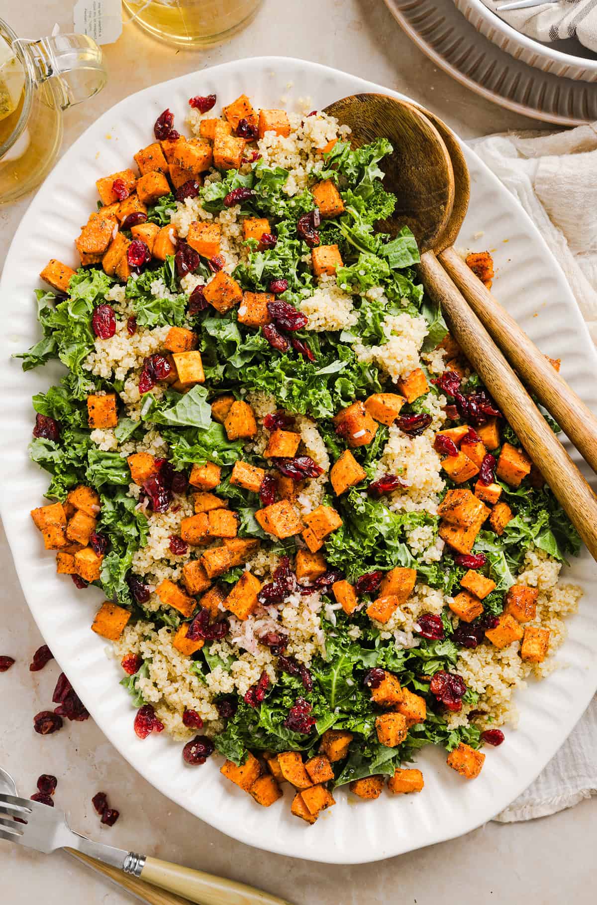 - Nutritious and filling – the combination of kale, quinoa, and sweet potatoes forms a power-packed trio that’s hearty, healthy, and satisfying. We love a meal-sized salad!